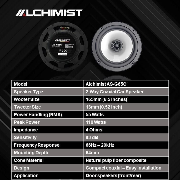 Nếu bạn đang tìm kiếm một giải pháp âm thanh tuyệt vời cho xe của mình, loa đồng trục Alchimist AS-G65C sẽ là lựa chọn hoàn hảo. Với thiết kế nhỏ gọn và chất lượng âm thanh vượt trội, sản phẩm này chắc chắn sẽ nâng tầm trải nghiệm nghe của bạn.