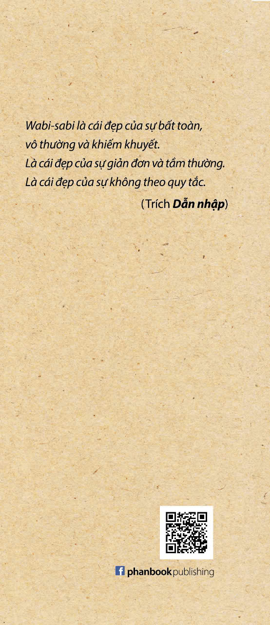 WABI-SABI (II) Những suy nghĩ thêm giải thích những bối cảnh trong đó hai từ tiếng Nhật wabi và sabi được kết hợp lại thành một, nêu rõ sự hình thành, đặc tính vật chất của khái niệm wabi-sabi. Bên cạnh đó, tác giả còn đặt thực tại wabi-sabi trong tương quan với thực tại số hóa, làm rõ thêm điểm hấp dẫn nhất của wabi-sabi với thực tại số hóa đang diễn ra và phổ biến khắp nơi.