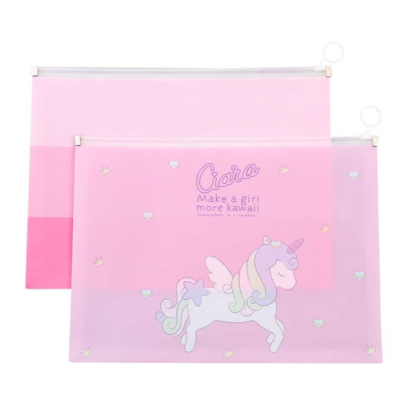 Bộ 2 túi đựng tệp A4 chống nước xinh xắn tiện dụng Chất liệu nhựa dẻo, chống thấm nước Đựng được tệp giấy A4, vật dụng, đồ dùng học tập, dụng cụ văn phòng phẩm