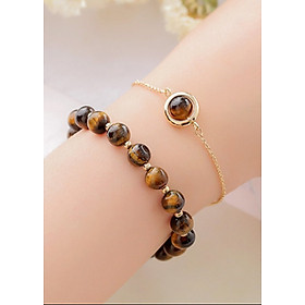 Bộ 2 vòng tay phong thủy đá mắt hổ vàng nâu 8mm mix bi tròn cao cấp cho Nữ cầu Lộc Tài Duyên