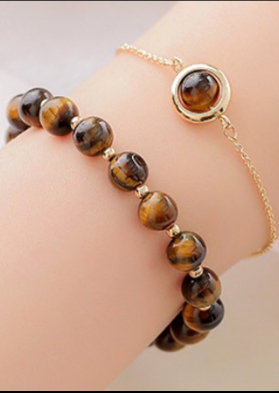 Bộ 2 vòng tay phong thủy đá mắt hổ vàng nâu 8mm mix bi tròn cao cấp cho Nữ cầu Lộc Tài DuyênBộ 2 vòng tay phong thủy đá mắt hổ vàng nâu 8mm mix bi tròn cao cấp cho Nữ cầu Lộc Tài Duyên
