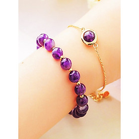 Bộ 2 vòng tay phong thủy đá thạch anh tím 8mm mix bi tròn cao cấp cho Nữ cầu Lộc Tài Duyên