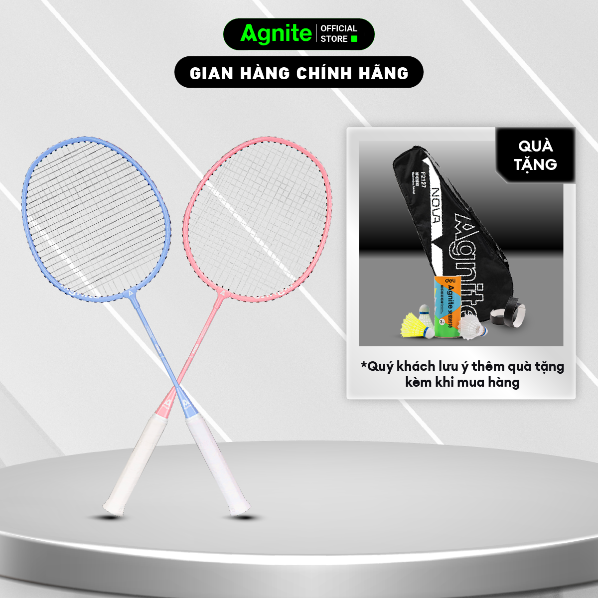 THÔNG SỐ CƠ BẢN Thương hiệu: Agnite Mã số: F2108 Số lượng: Hai chiếc Màu sắc: xanh lam + đỏ Trọng lượng vợt: 110 ± 5g Độ cứng thanh: cứng Lực căng dây: 16-18LB Chiều