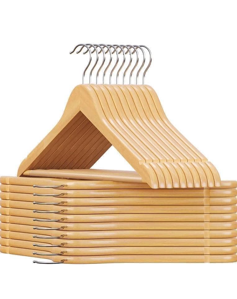 Một món đồ bắt mắt trong tủ quần áo của bạn: trên những chiếc móc treo này, gây ấn tượng với màu óc chó sẫm và bề mặt nhẵn dễ chịu, những bộ quần áo