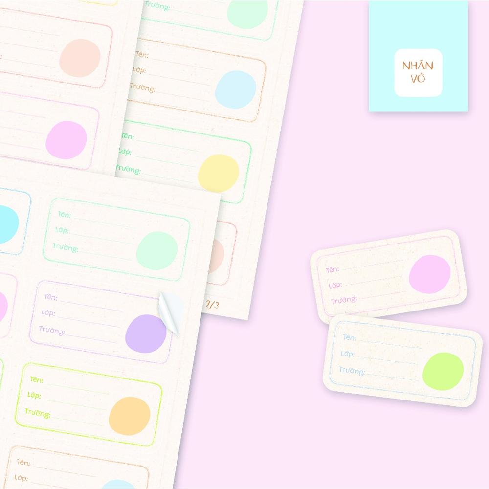 Nhãn vở dạng đề can tiện dụng, bạn chỉ cần bóc phần giấy đằng sau và dán vào sách vở là có thể sử dụng được.