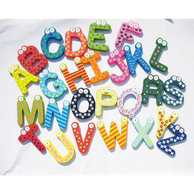 Bộ 26 chữ cái có nam châm hít làm từ gỗ ép nam châm rất an toàn cho các bé vui chơi.