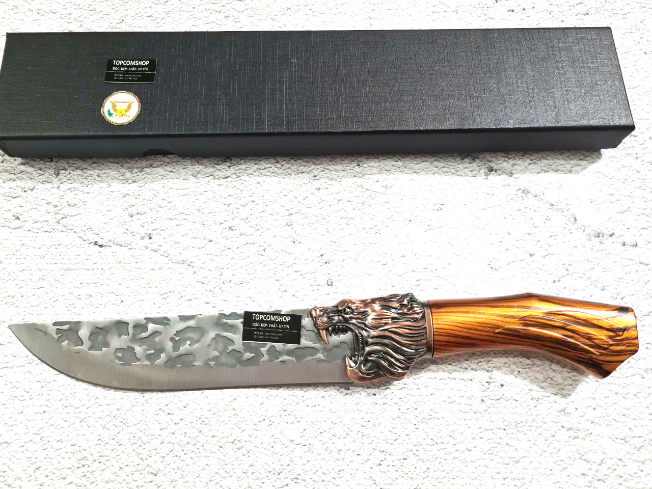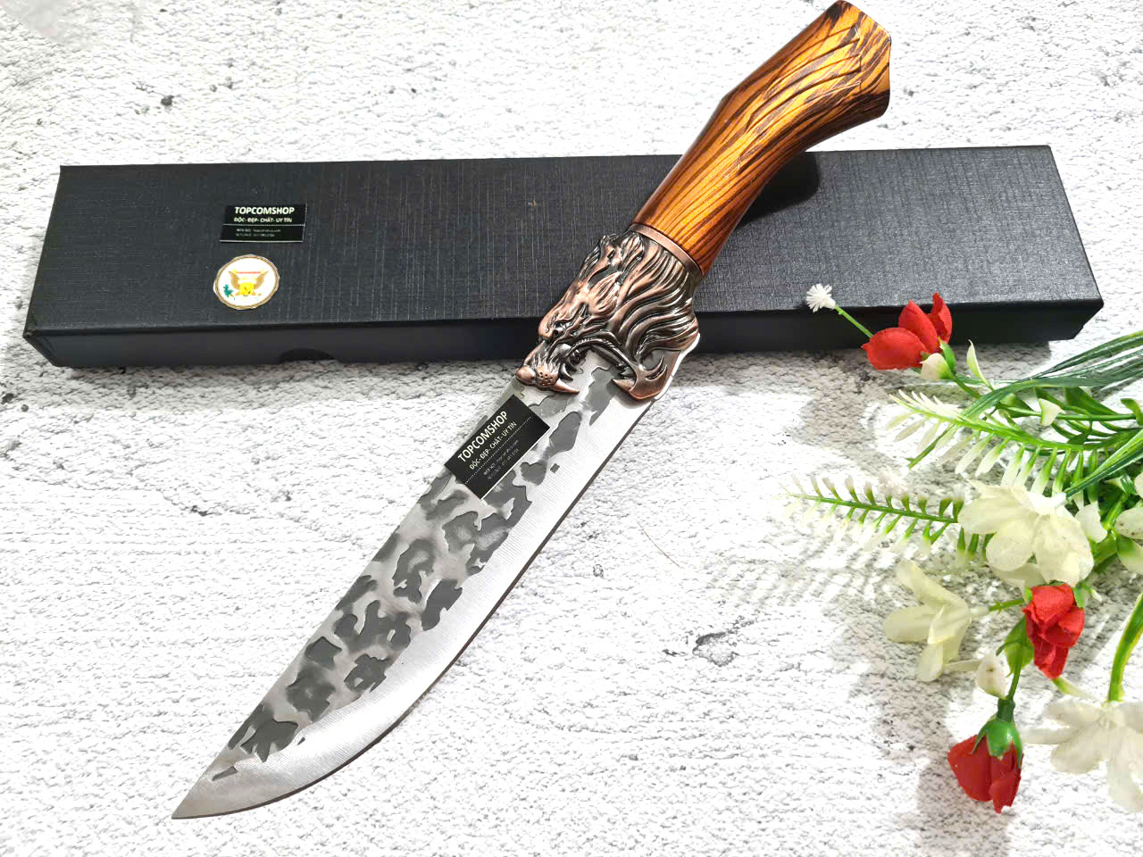 D SỐ 1 : TỔNG DÀI : 29cm, LƯỠI: 14cm,RỘNG : 4.5cm, dày: 3mm, NẶNG : 1.5 lạng, CHẤT liệu lưỡi: 4Cr13MOV (thép 4 crom 13 molypden vanadi).Chất liệu CÁN: nhựa abs xịn . khâu đầu rồng và chuôi bằng thép 4cr13