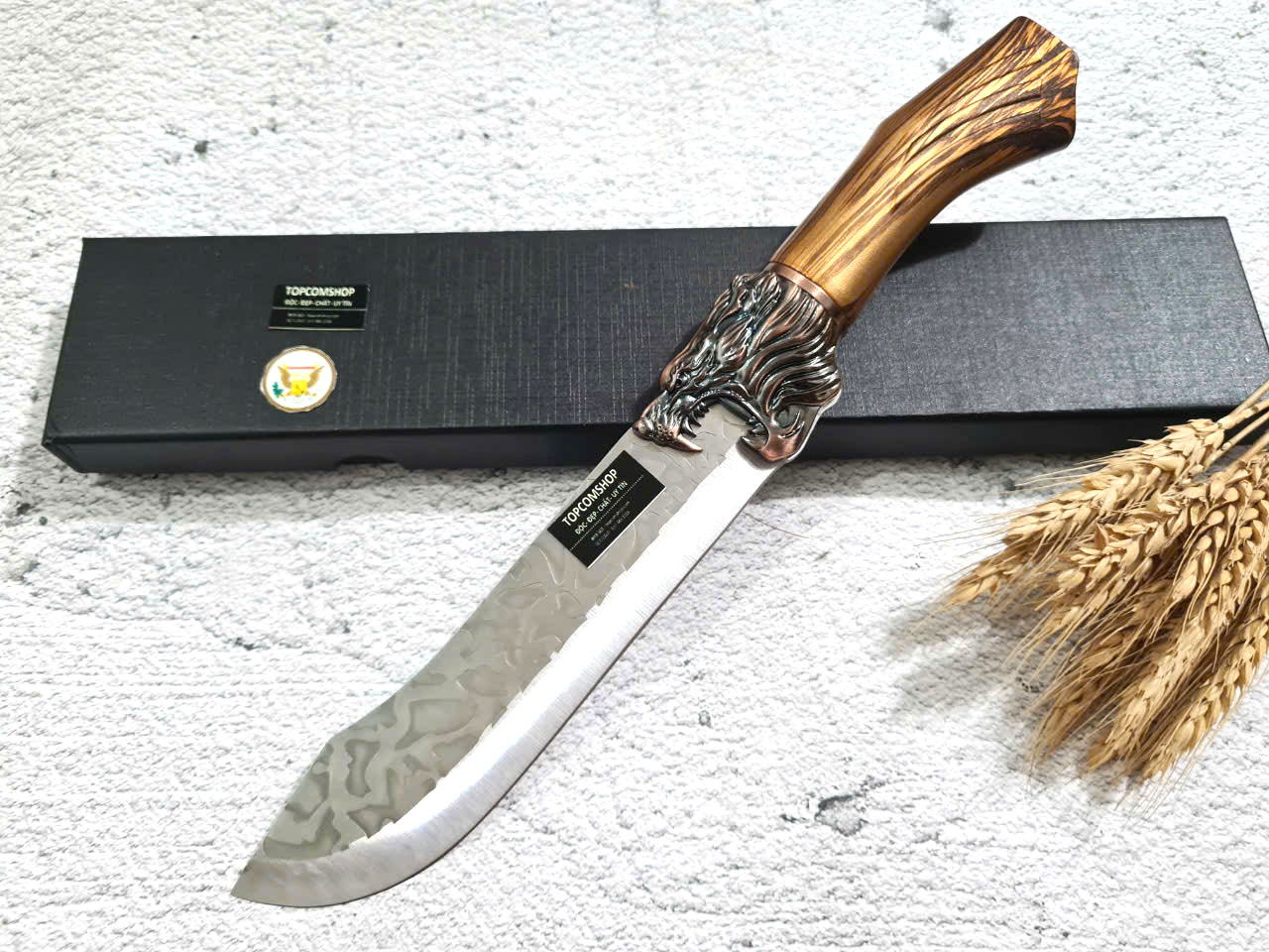 D SỐ 1 : TỔNG DÀI : 29cm, LƯỠI: 14cm,RỘNG : 4.5cm, dày: 3mm, NẶNG : 1.5 lạng, CHẤT liệu lưỡi: 4Cr13MOV (thép 4 crom 13 molypden vanadi).Chất liệu CÁN: nhựa abs xịn . khâu đầu rồng và chuôi bằng thép 4cr13