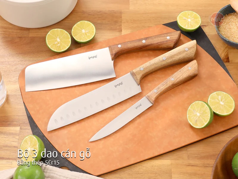 Bộ 3 dao nhà bếp iMat đáp thích hợp cho chế biến thực phẩm, với thiết kế bền bỉ và lưỡi thép 5CR15 sắc bén, giúp dễ dàng băm, thái mọi nguyên liệu. Bộ dao