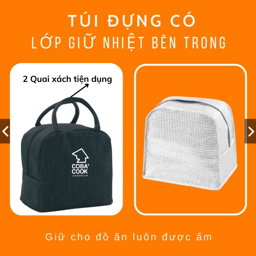 Bộ COMBO 3 hộp cơm thủy tinh chịu nhiệt COBACOOK hình tròn 400ml + kèm túi vuông giữ nhiệt