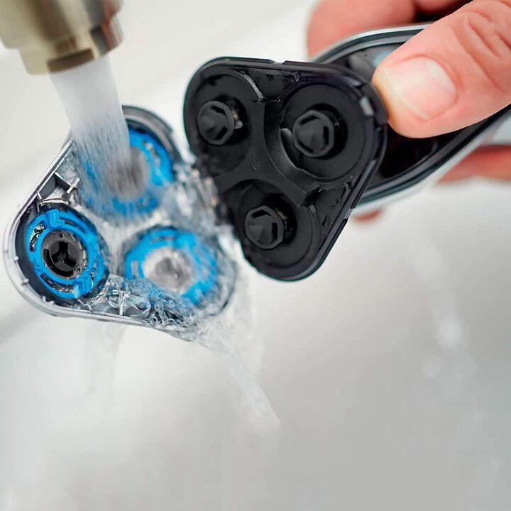 - Chọn cách cạo râu bạn thích. Với đầu bịt Khô & Ướt, bạn có thể chọn cạo khô nhanh và thoải mái. Hoặc bạn có thể cạo ướt với kem cạo râu hay bọt cạo râu, kể cả khi tắm. Reset lại máy cạo râu sau khi thay thế đầu cạo