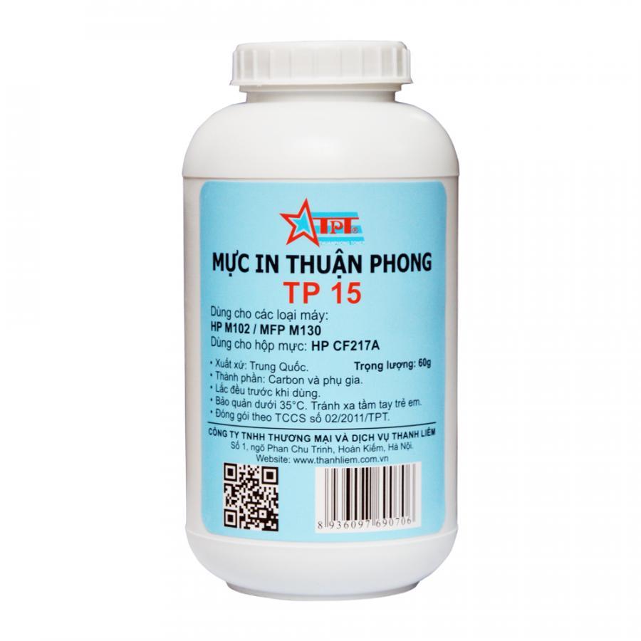 Mực đổ Thuận Phong TP15 dùng cho các dòng máy sau: - HP M102 / MFP M130 Dùng cho hộp mực: - HP CF217A Thông số kỹ thuật: - Số lượng: 30 chai. -