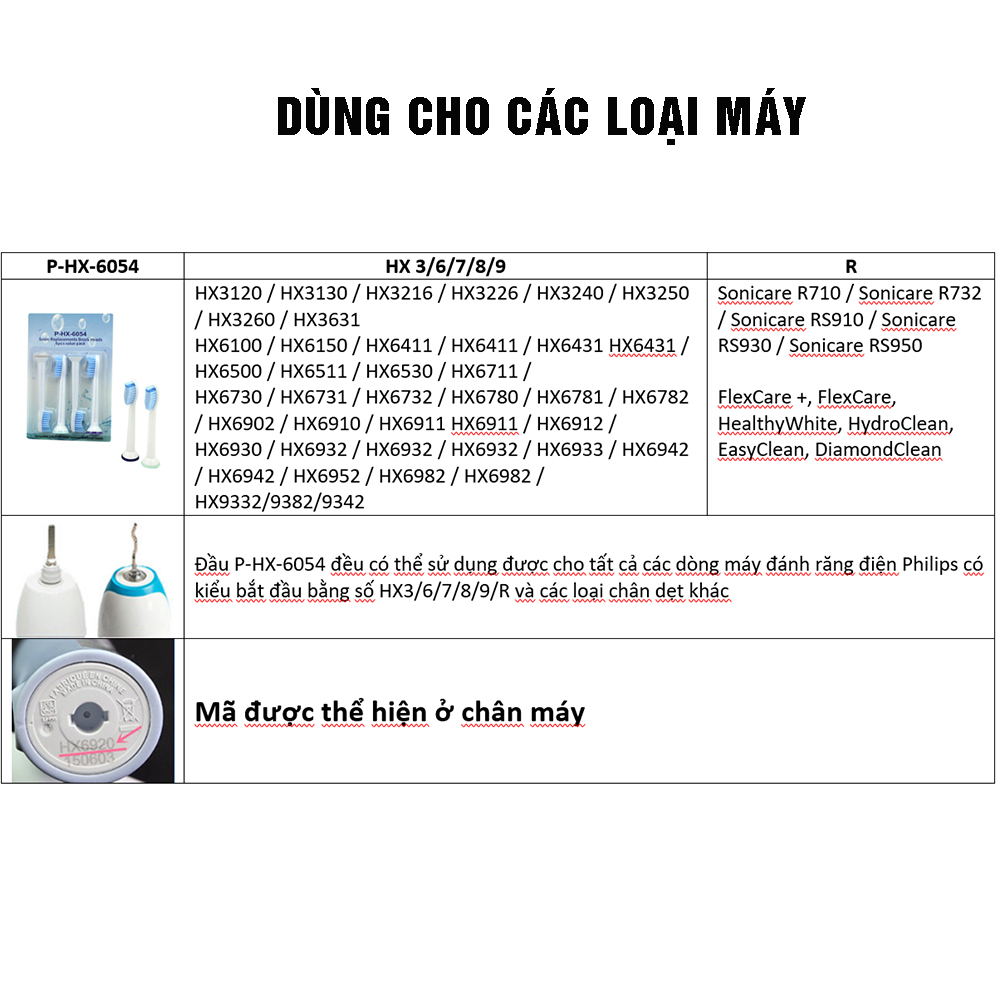 - Loại bàn chải: Cho máy Philips
