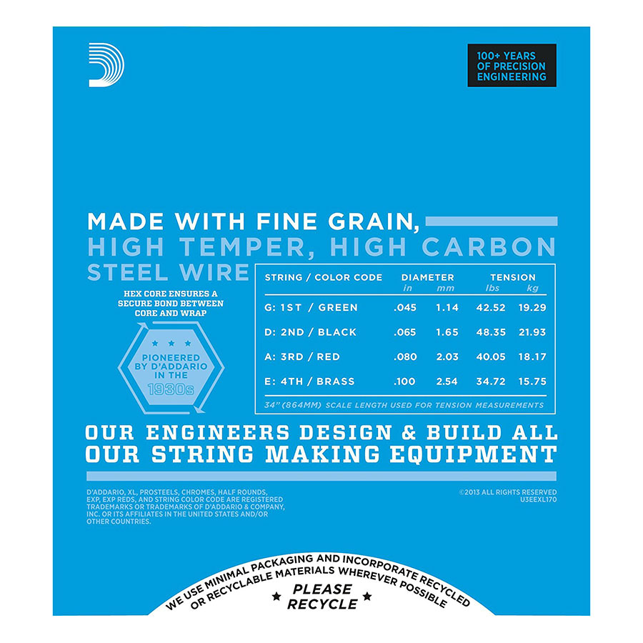 - Bộ 4 Dây Đàn Guitar Bass D'Addario EXL170 được sản xuất bằng thép mạ nickel với tông màu sáng đặc biệt và ngữ điệu xuất sắc. Âm bass thể hiện được hầu hết tất cả các thể