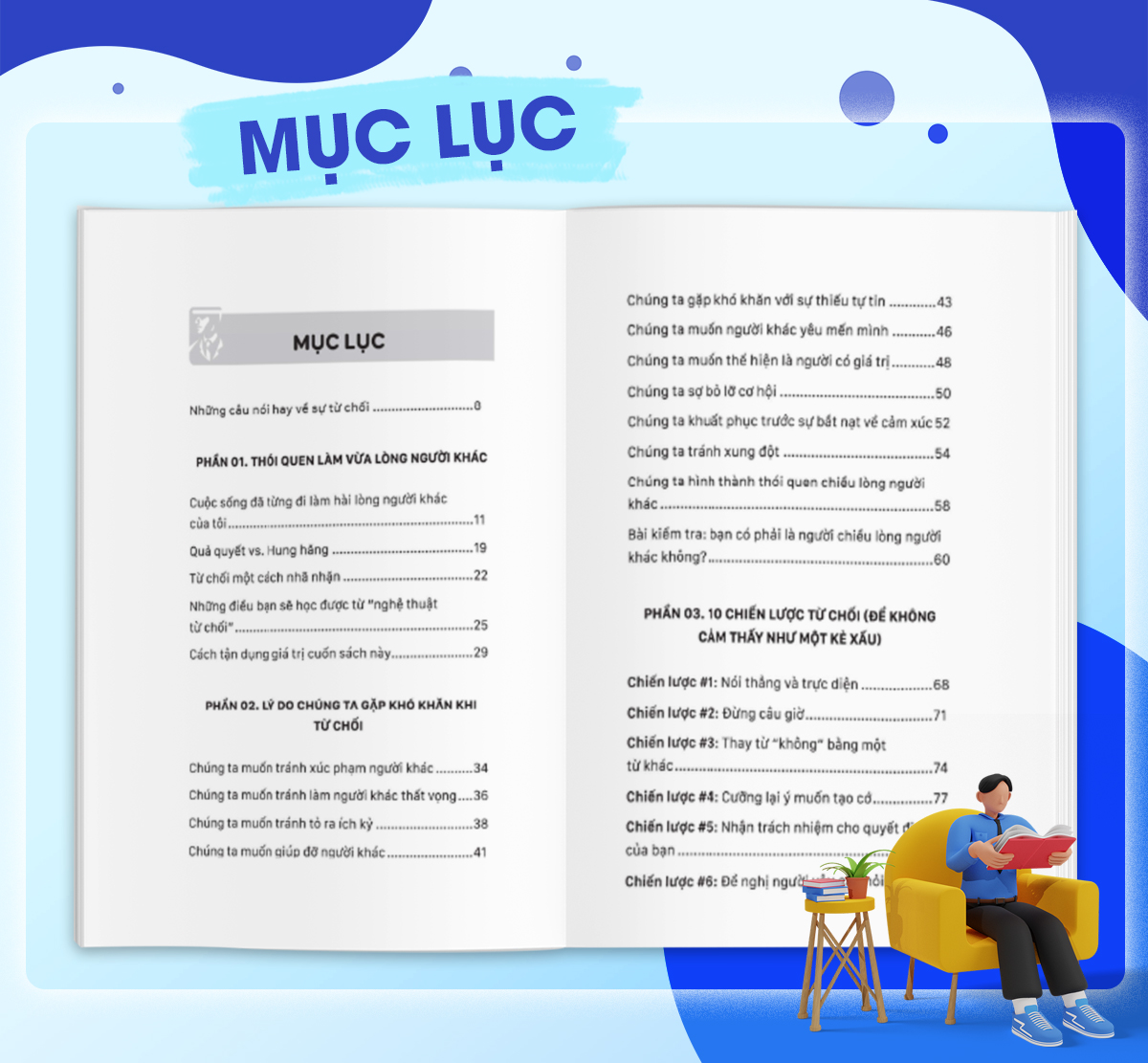 Bí quyết đưa ra lời Từ chối mà không làm tổn hại các mối quan hệ nằm “Nghệ Thuật Từ Chối – Cách Nói Không Mà Vẫn Có Được Đồng Thuận” giúp bạn tìm hiểu nguyên nhân và đưa ra cách từ chối “nhẹ nhàng”. Cuốn sách chia quy trình Từ chối thành những bước như- Chuẩn bị từ chối, đưa ra từ chối và hoàn tất từ chối – cuốn sách hướng dẫn bạn phương pháp nói Không hiệu quả, mạnh mẽ nhất, bạn có thể thực hiện ngay trong đời sống, công việc và các mối quan hệ.