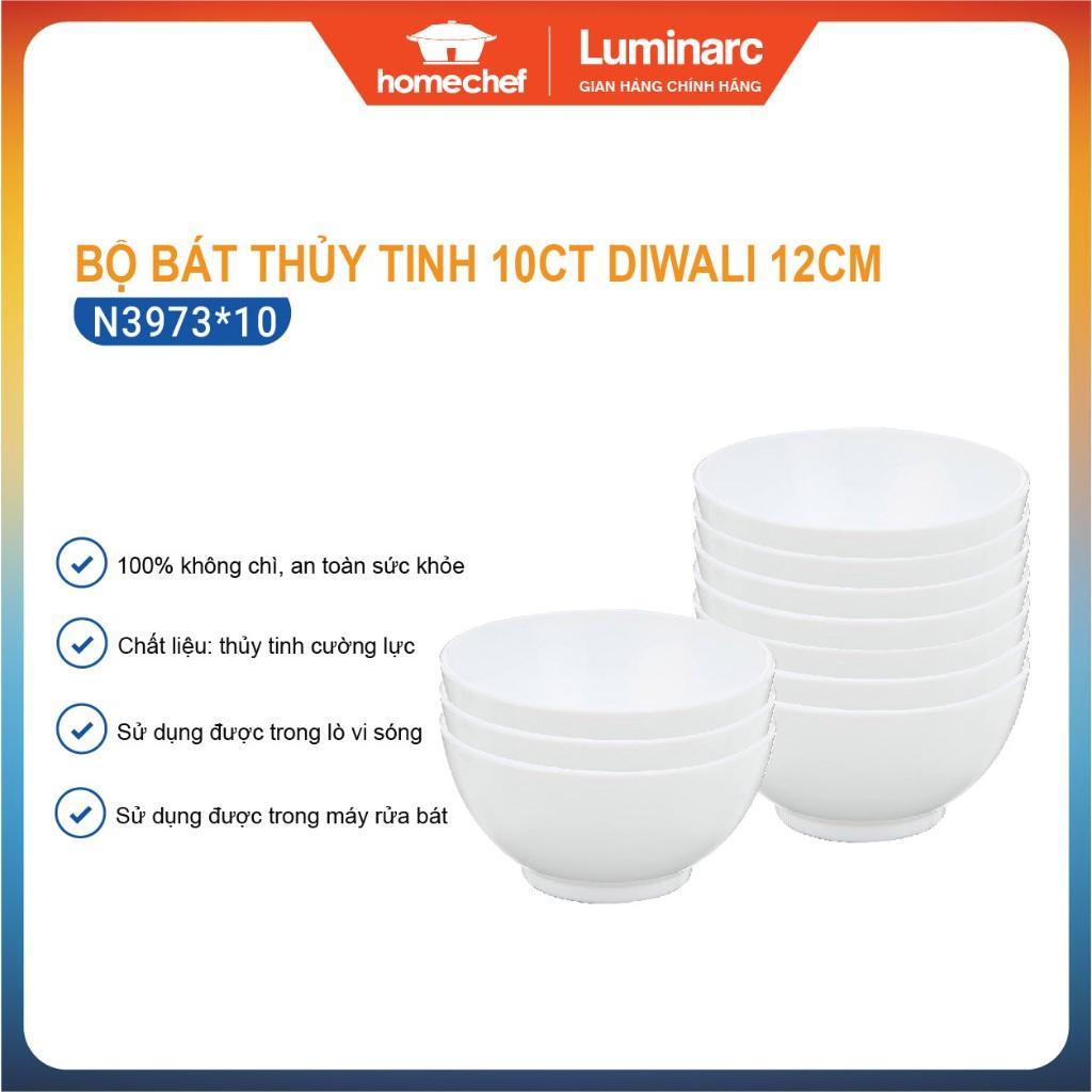 ✨Bộ 6 bát (chén) cơm thủy tinh Luminarc Diwali 12cm N3973*6, dùng lò vi sóng, máy rửa bát | Hàng chính hãng
