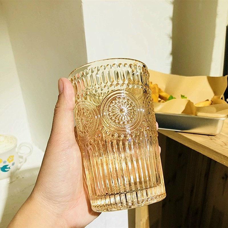 ✨Bộ 6 cốc thủy tinh uống nước hoặc rượu tây hoa văn trống màu vàng gold sang trọng