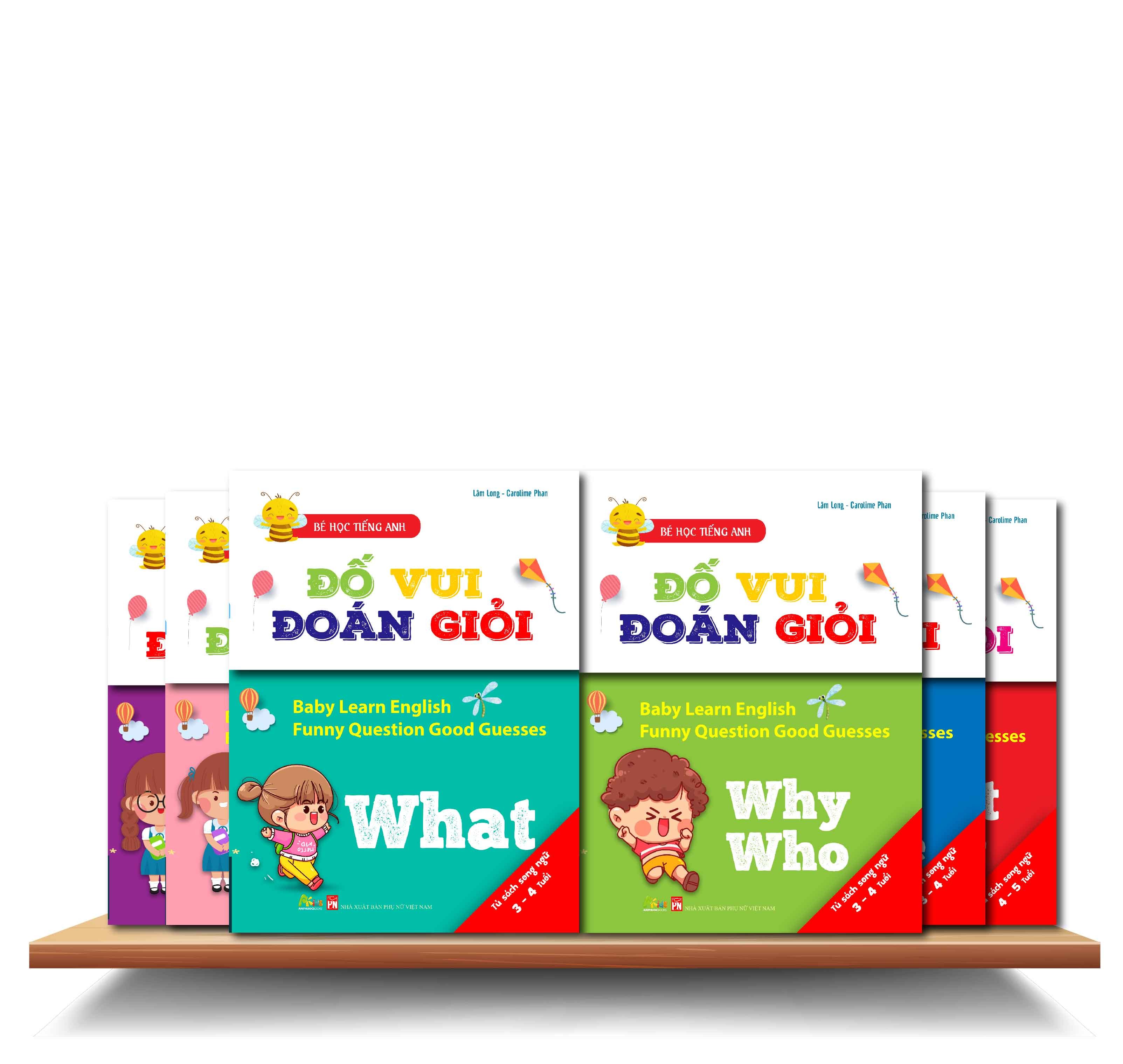 Mỗi một cuốn sách sẽ giúp bé làm quen với các dạng câu hỏi tiếng Anh có từ để hỏi đơn giản và dễ áp dụng nhất như: What, Where, When, Why, Who, How. Nhờ đó, các con vừa rèn luyện được tư duy nhanh nhẹn, vừa học được kĩ năng đặt câu hỏi 1 cách đơn giản và chính xác. Ngoài ra, vì đây là bộ sách được biên soạn song song 2 ngôn ngữ Việt – Anh nên ngoài việc học tiếng Anh, phụ huynh còn có thể sử dụng để dạy con tập đánh vần, đọc tiếng Việt.