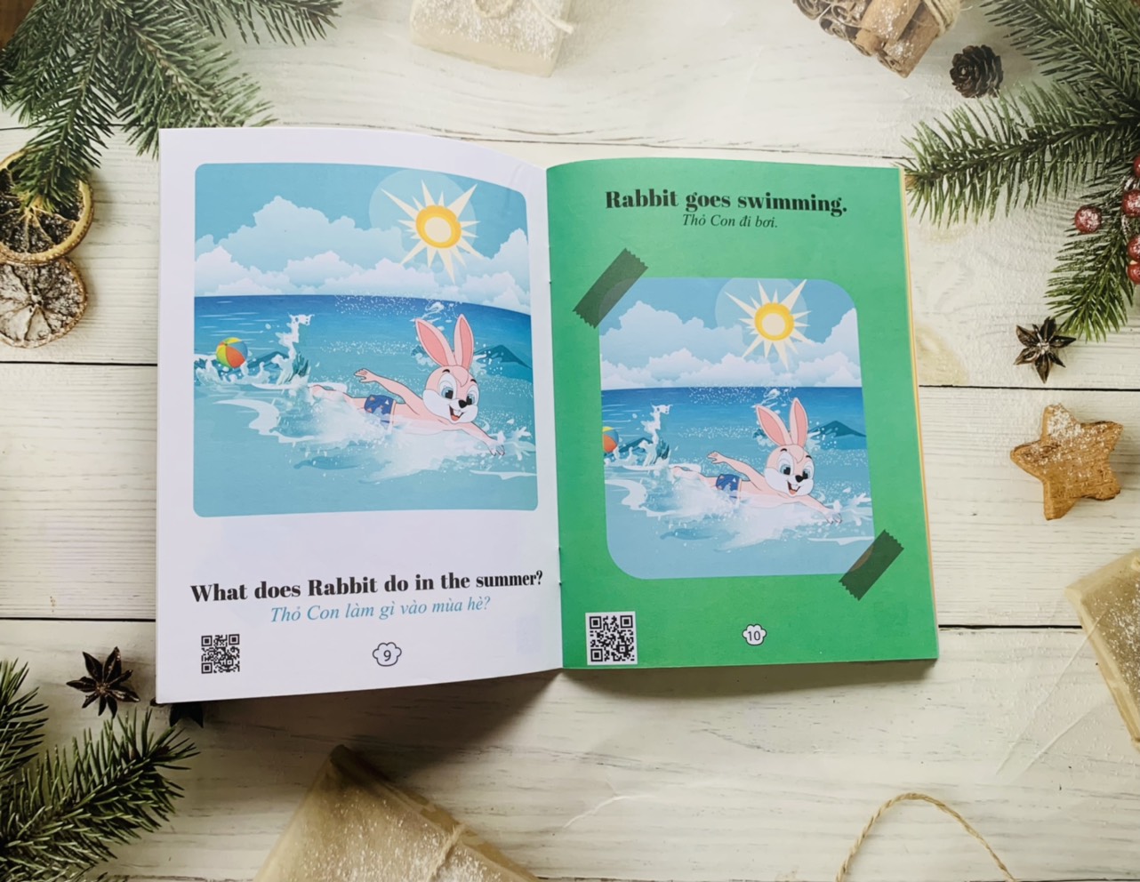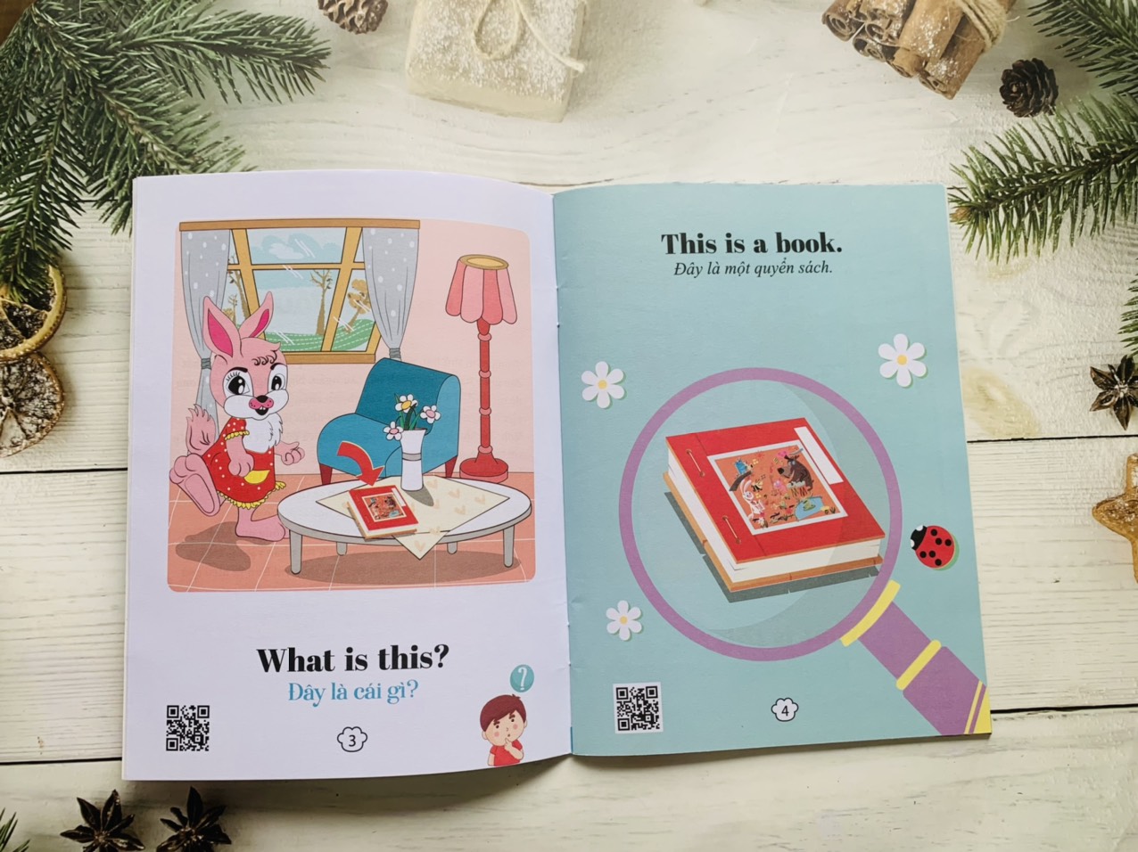 Đây là bộ sách song ngữ thú vị gồm những câu đố, câu hỏi, từ vựng đơn giản bằng tiếng Anh lẫn tiếng Việt. Với màu sắc sặc sỡ, sống động, hình minh họa hóm hỉnh, gần gũi hệt như truyện tranh, bé sẽ không hề cảm thấy nhàm chán khi lật giở từng trang sách.
