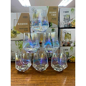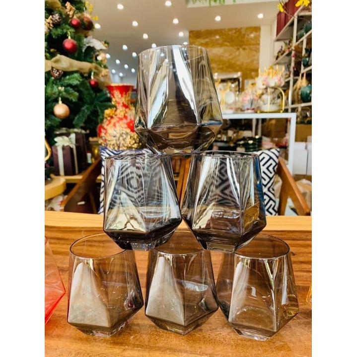 ✨Bộ 6 ly thủy tinh chịu nhiệt cao cấp dùng uống nước hoặc rượu tây vân kim cương ánh xanh
