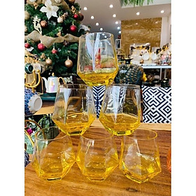 ✨Bộ 6 ly thủy tinh chịu nhiệt cao cấp dùng uống nước hoặc rượu tây vân kim cương vàng chanh