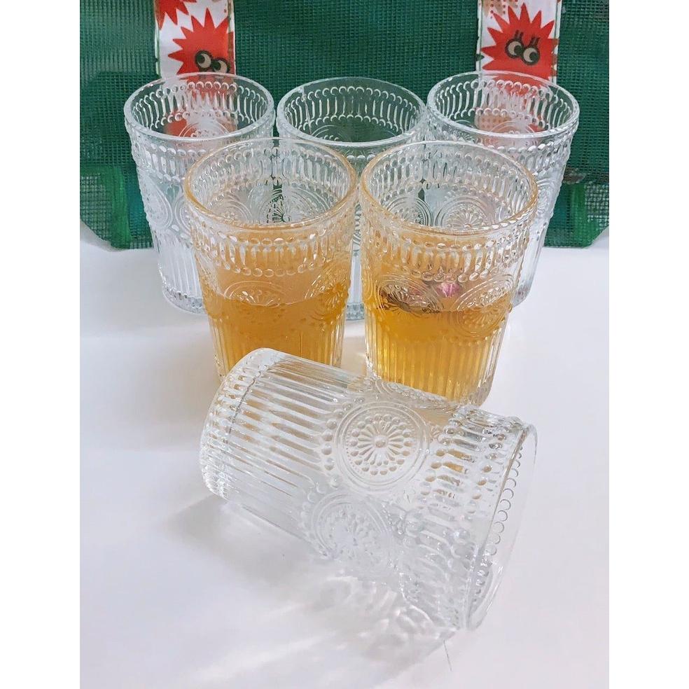 ✨Bộ 6 ly thủy tinh chịu nhiệt cao cấp dùng uống nước hoặc rượu tây vân trống đồng trắng không viền vàng 365ml