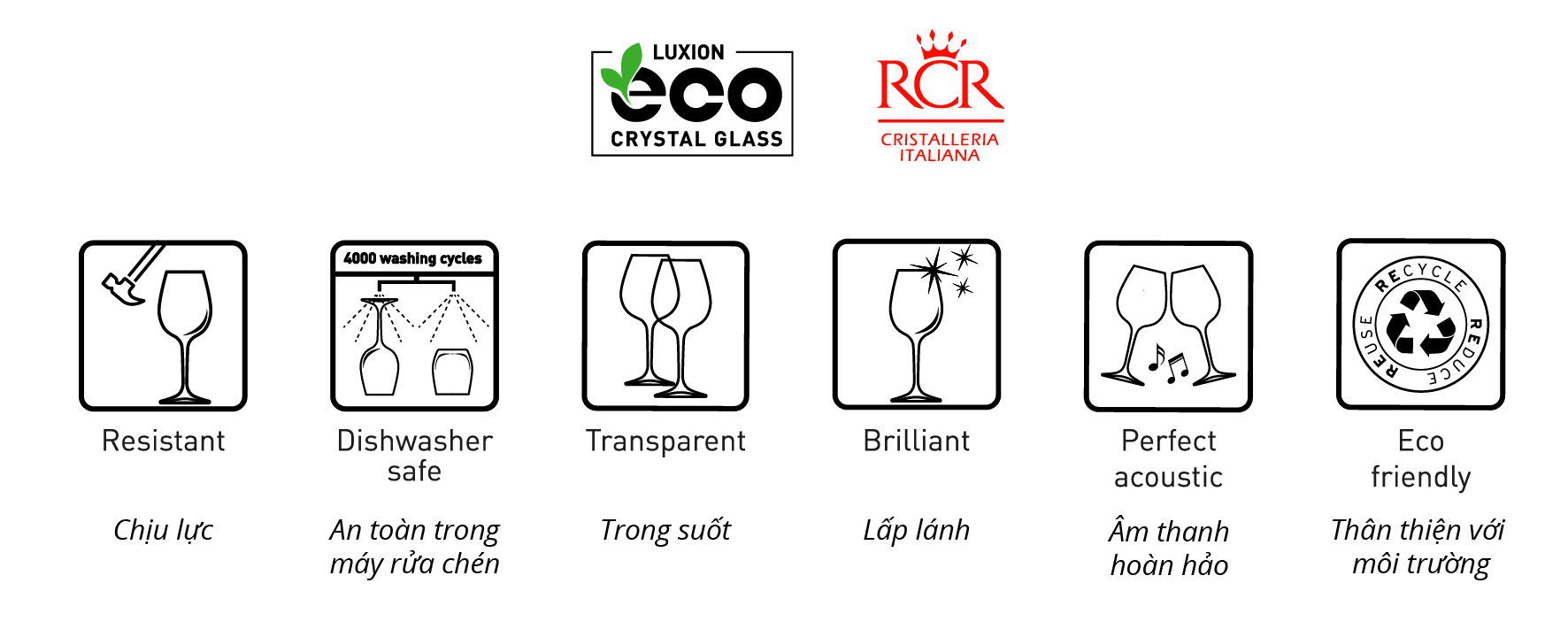 - Có độ trong suốt cao - Không chứa chì hay kim loại nặng có hại cho sức khỏe - Chất liệu thủy tinh không chứa các hóa chất độc hại, màu sắc tự nhiên