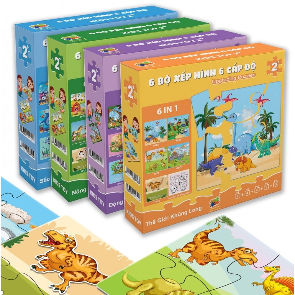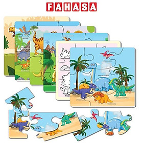 ✨Bộ 6 Tranh Xếp Hình 6 Cấp Độ 17 x 17 cm - Thế Giới Khủng Long - Minh Châu C6-001