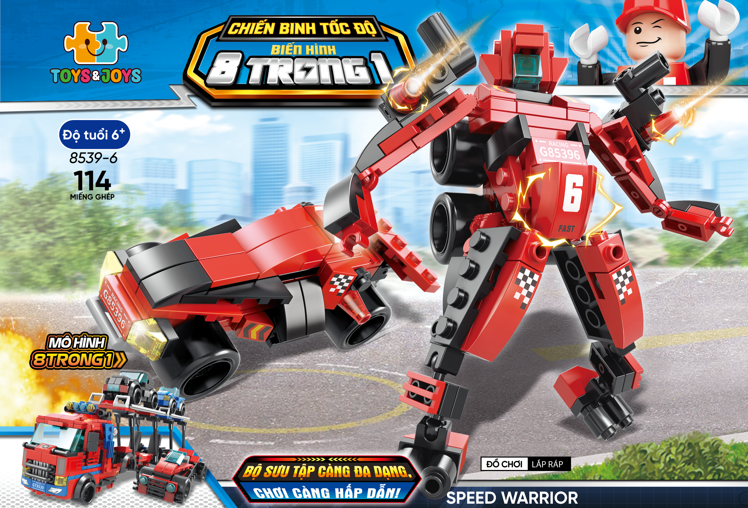 ✨Bộ 8 Đồ Chơi Lắp Ráp Chiến Binh Tốc Độ Biến Hình 8 Trong 1 - Speed Warrior - Toys&Joys 8539 (886 Mảnh Ghép)