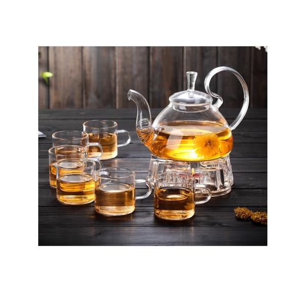 ✨Bộ ấm chén thủy tinh 600ml tay vồng kèm bếp nến