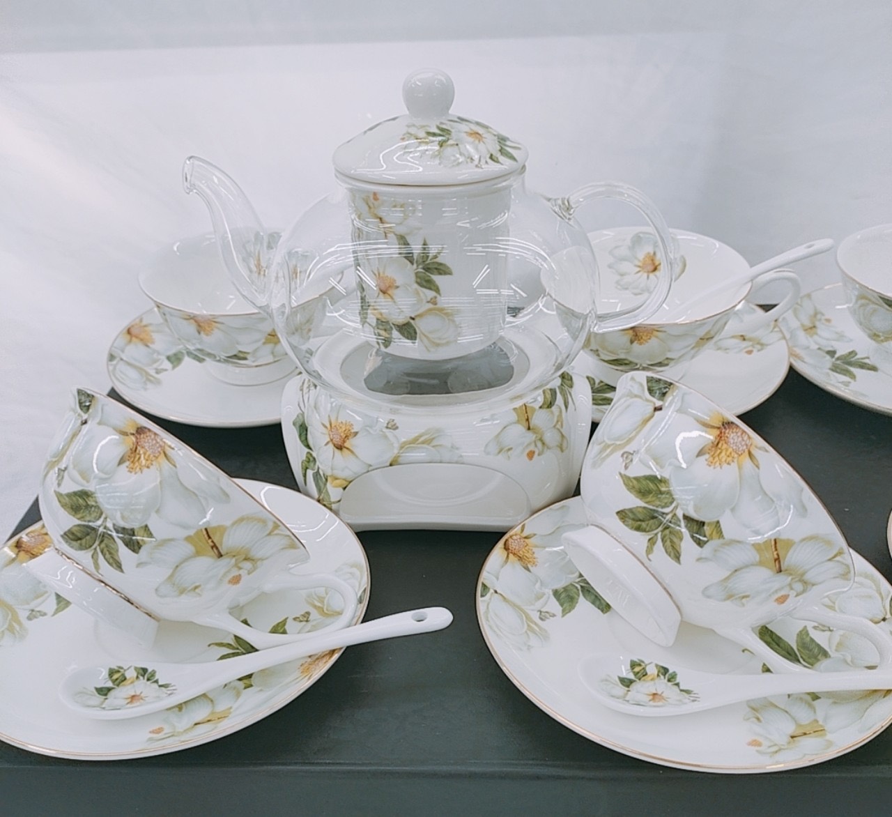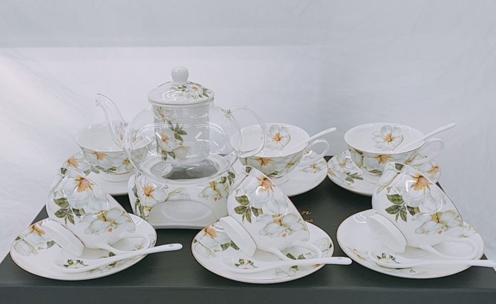 *Bộ ấm trà cà phê cao cấp được làm từ sứ xương với ưu điểm mỏng, bền, đẹp và chịu được nhiệt độ cao.