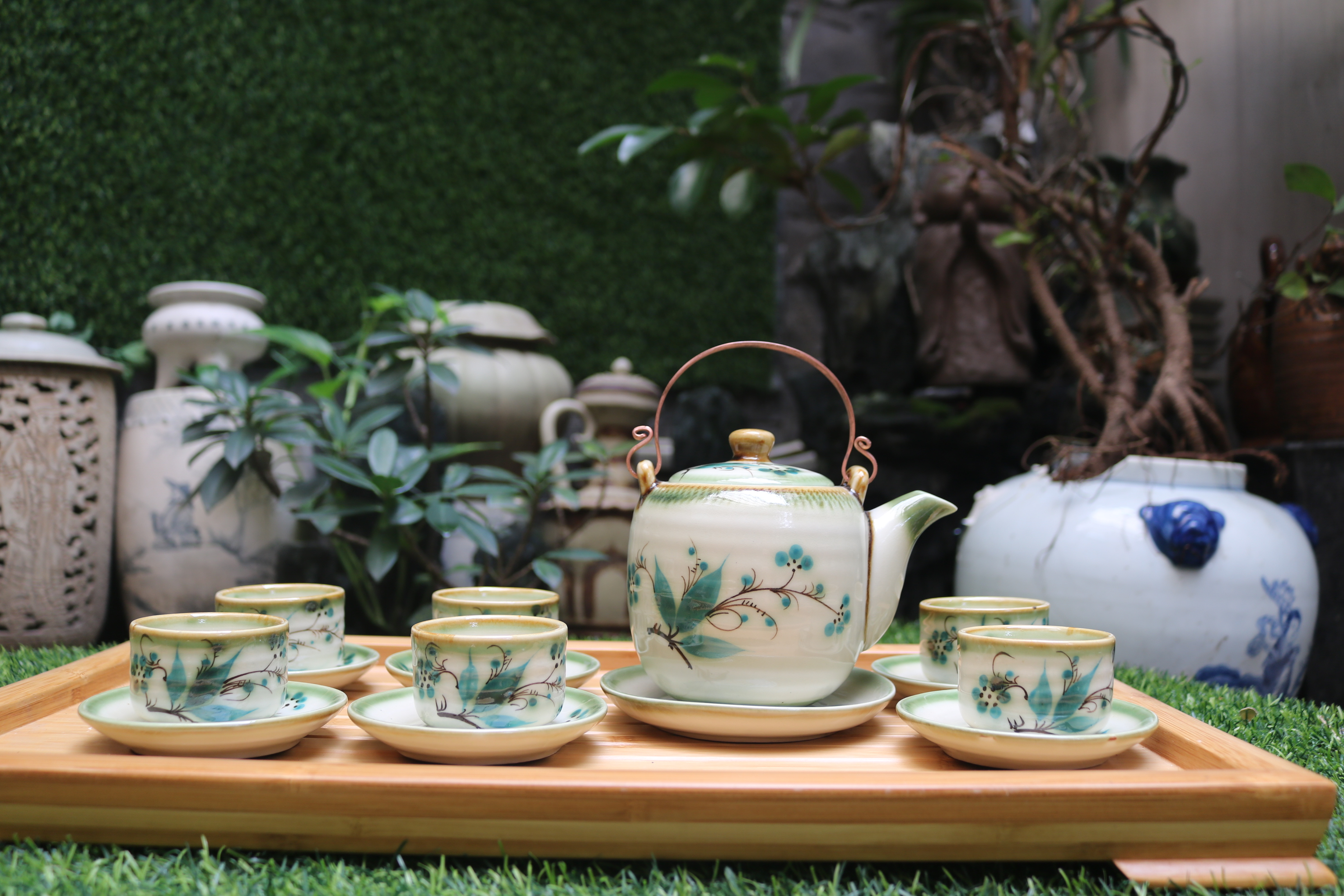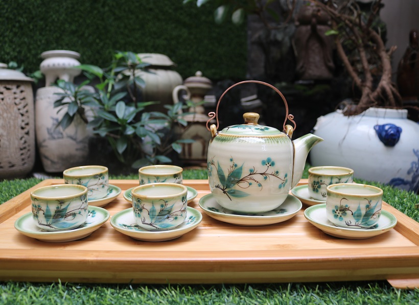 - Bộ Trà Nhánh Trúc Gốm Sứ Bát Tràng T548C - Gốm sứ nung ở nhiệt độ > 1300 độ C. - Sản phẩm xuất xứ Bát Tràng - việt Nam. - Dòng men trắng