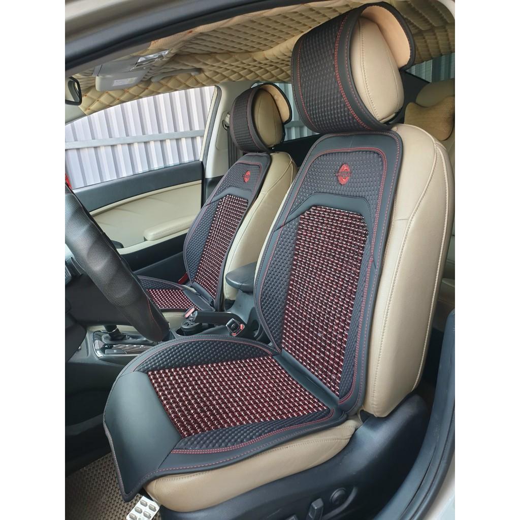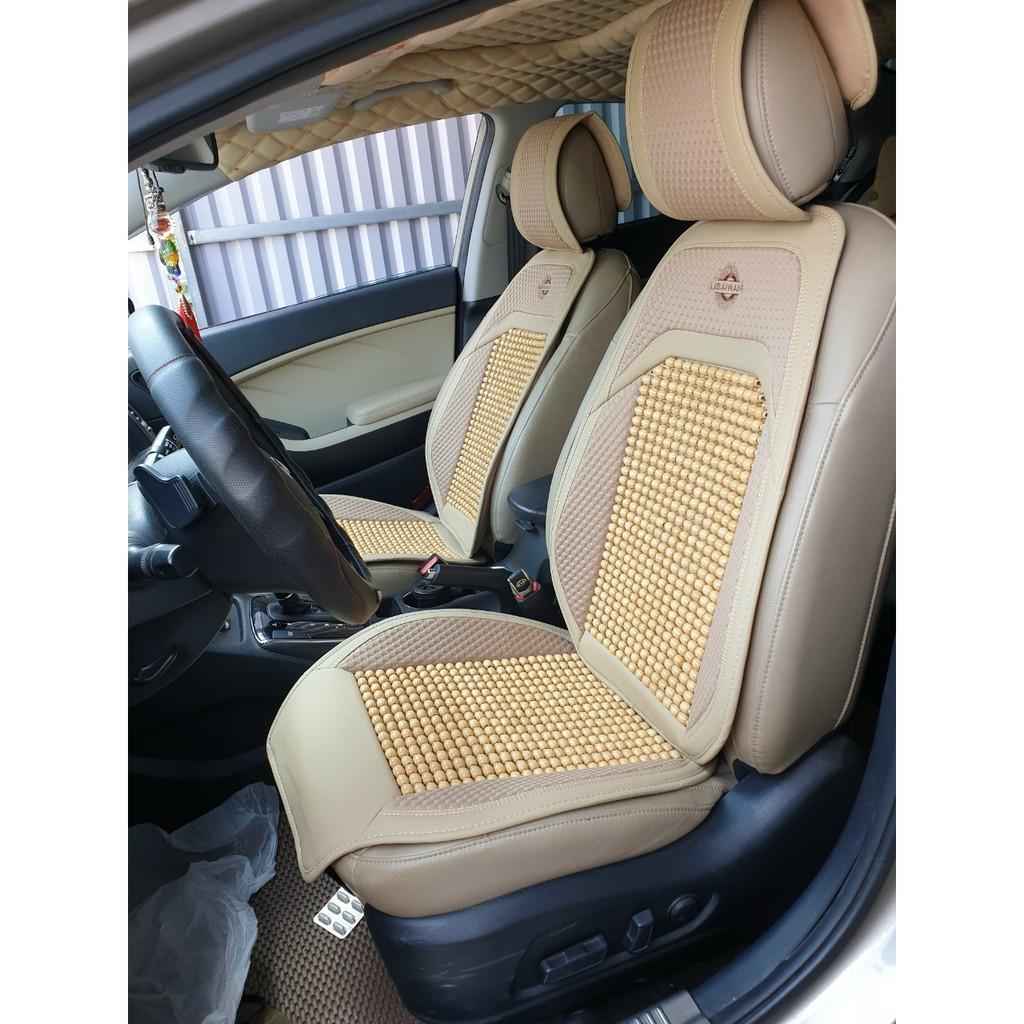 Bộ áo ghế ô tô lót liền hạt gỗ da cao cấp phủ 1 ghế trước, có đan hạt gỗ chống nóng, massage lưng