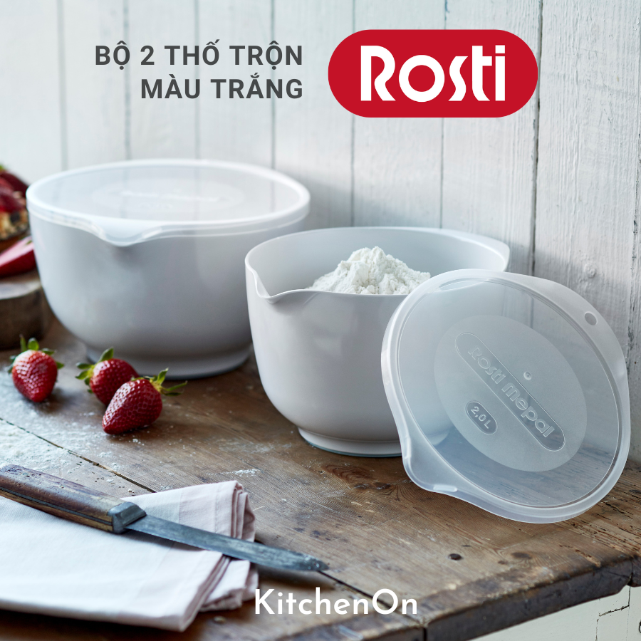 ✨Bộ âu trộn Rosti màu trắng. 2 âu + 2 nắp. Nhãn Rosti Đan Mạch