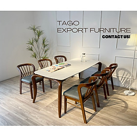 Được sản xuất 100% từ chất liệu gỗ tự nhiên. Mặt bàn đá ceramic . Đây là dòng bàn ăn được ưa chuộng do thiết kế sang trọng, đẹp và vô cùng tinh tế. Bên