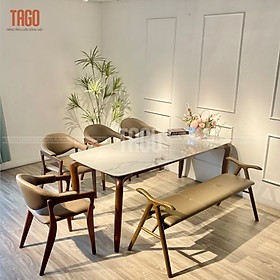 Review mẫu bàn ăn RUDY mặt đá ceramic phối cùng bench sang trọng| TAGO Furniture