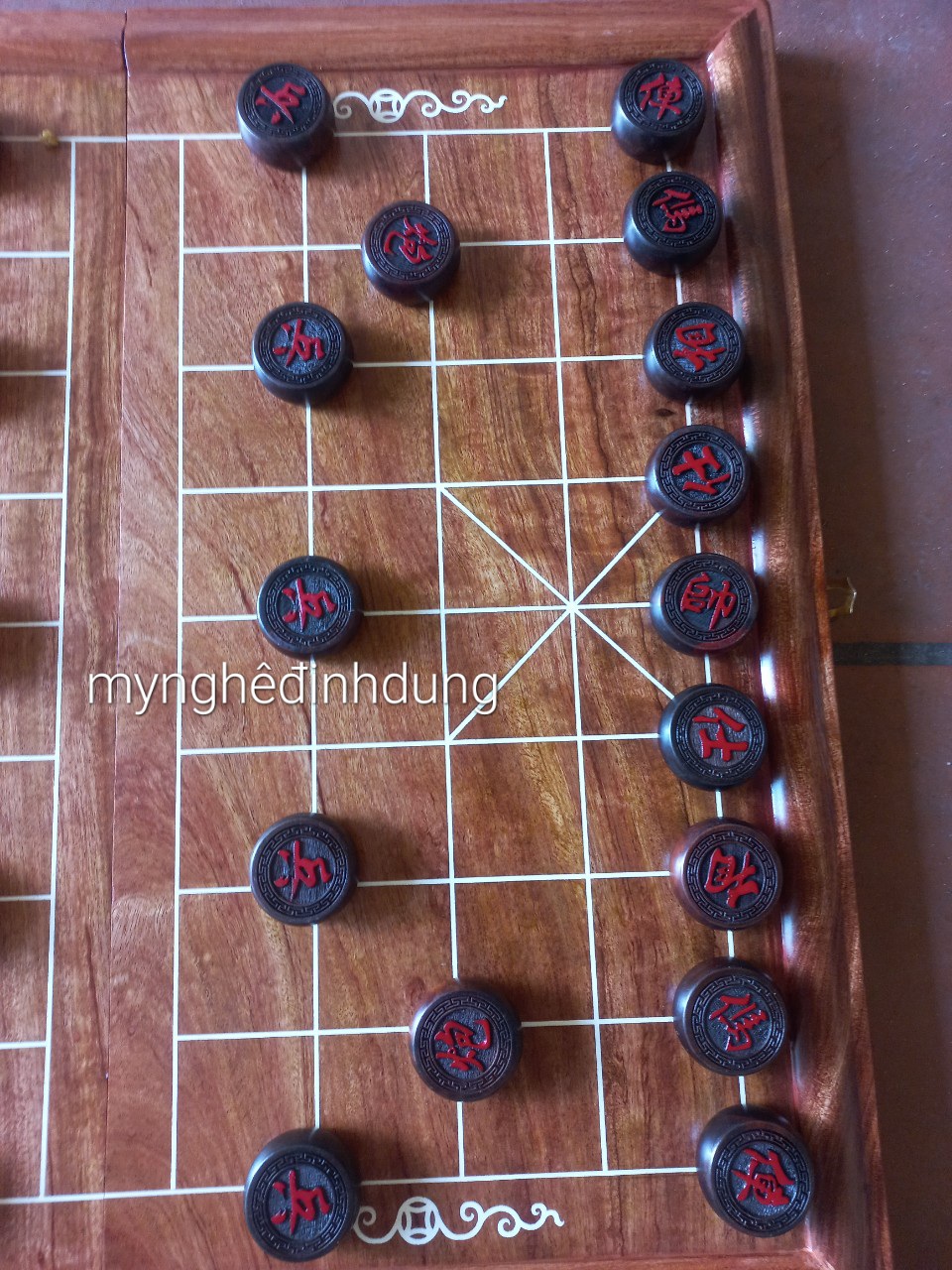 _ Bộ bàn cờ tướng +quân cờ được làm bằng chất liệu gỗ trắc đỏ đen tự nhiên 100% _ Kt bàn cờ 52×50 dầy 3cm _ Kt quân cờ 4.0×1.5cm _ Bộ bàn cờ