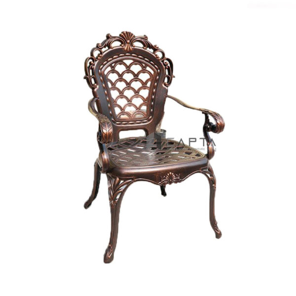 Ghế Cafe sân vườn nhôm đúc màu đồng CC2017-A Nội thất Capta Ghế ngoài trời có tay tựa thân ghế hình bông sen - Chất liệu: nhôm đúc sơn tĩnh điện màu đồng - Thiết