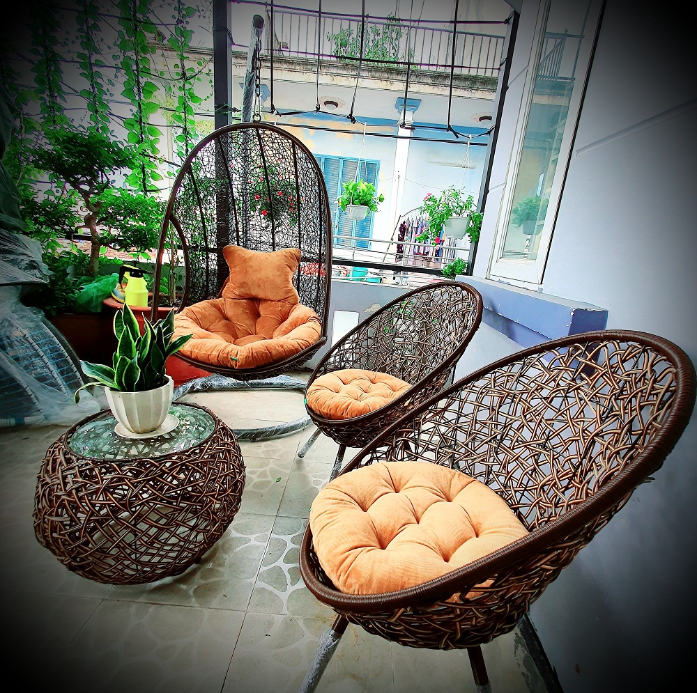Khi các loại sản phẩm mây tự nhiên ngày cạn kiệt đi thì đồ nhựa giả mây đang là lựa chọn thông minh với người tiêu dùng. Với chất liệu nhựa giả mây chúng gần gũi với tự nhiên, màu sắc đa dạng, bền và đẹp…, đồ mây nhựa vừa mang sự tinh tế sang trọng của mây mà lại có giá cả phù hợp với mọi gia đình. Với ghế xích đu , ghế bap bênh , ghế ban công sử dụng chất liệu nhựa giả mây thường được ưu tiên lựa chọn vì tính thân thiện, bền bỉ và tự nhiên của nó. Đặc biệt Navicom chúng tôi phong Phú về kiểu dáng, màu sắc chiếc nệm đi kèm Cung như chất liệu để bạn tha hồ lựa chọn. Dù bạn có đặt ở bất cứ vị trí nào trong nhà hay ngoài ban công, sản vườn để tăng thêm vẻ đẹp của không gian cũng như thể hiện cá tính của chủ nhân. Bộ sản phẩm gồm : 01 bàn mặt kính + 02 ghế + 01 xích đu như hình  Đặc biệt kèm theo bộ nệm xích đu + 02 đệm ghế chất liệu vải nhung màu sắc như hình Chất liệu : sắt được tĩnh điện và được gia công sợi giả mây tăng tính thẩm mỹ và độ bền cao khi để ngoài trời Thương hiệu : NAVICOM Trọng lượng : 18kg