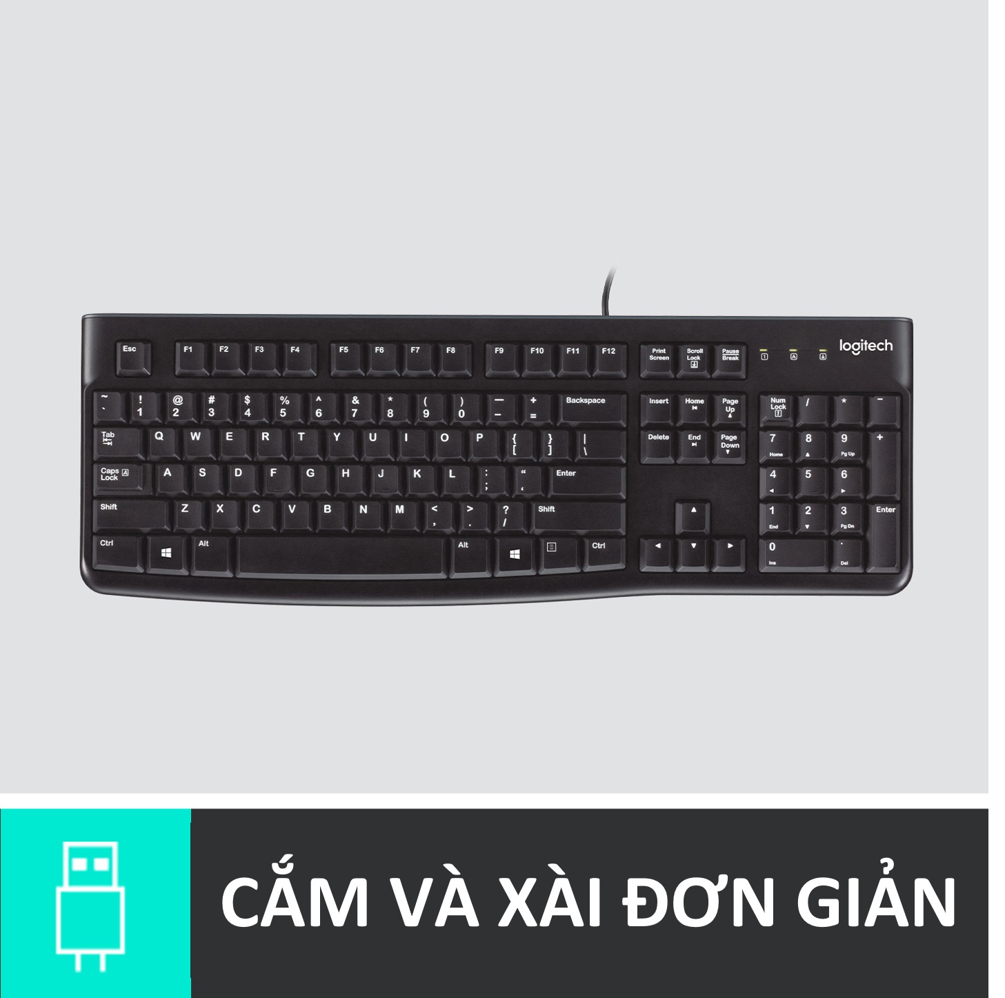 BỘ ĐÔI CHUỘT VÀ BÀN PHÍM MÁY TÍNH CÓ DÂY MK120(Chuột Logitech B100 và phím logitech K120) THÔNG SỐ KỸ THUẬT BÀN PHÍM K120 Logitech Thiết kế chống nước đổ tràn 4Được kiểm nghiệm trong điều kiện giới hạn (tối đa 60 ml chất lỏng đổ tràn). Không được nhúng bàn phím vào chất lỏng. Độ cao bàn phím có thể điều chỉnh Bàn phím số 10 phím Đèn báo khóa chữ hoa (Caps lock) Đèn báo khóa số (Num lock ) Lên tới 10 triệu lần nhấn phím (trừ phím khóa số) Loại phím: Cấu hình sâu Chiều cao: 155 mm Chiều rộng: 450 mm Chiều dày: 23,5 mm Trọng lượng: 550 g Chiều dày: Tăng độ sáng phím CHUỘT B100 Logitech Công nghệ cảm biến: Theo dõi quang học Số lượng nút: 3 (Nhấp trái/phải, Nhấp chuột giữa) Cuộn: từng dòng Bánh xe cuộn: Có, quang học Chiều cao: 113 mm Chiều rộng: 62 mm Chiều dày: 38 mm Trọng lượng: 90 g Chiều dày: 180 cm MÔ TẢ CHI TIẾT ĐƠN GIẢN, ĐÁNG TIN CẬY Hoàn thành công việc phải là hoạt động đơn giản. Đó là điều khiến cho Bộ đôi MK120 trở thành công cụ phù hợp hoàn hảo. Con chuột và bàn phím có kích thước đầy đủ đem đến thiết kế quen thuộc, dễ sử dụng, hoạt động ngay khi lấy ra khỏi hộp. Chỉ cần cắm bộ đôi có dây này qua USB là sử dụng được. BÀN PHÍM CÓ KÍCH THƯỚC ĐẦY ĐỦ Bàn phím có kích thước đầy đủ kèm bàn phím số tích hợp này giúp cho việc nhập dữ liệu, tính toán và điều hướng diễn ra nhanh chóng. Phím cách uốn cong cùng với các phím dễ đọc đem đến trải nghiệm gõ thoải mái và quen thuộc. THOẢI MÁI CHO CẢ HAI TAY Con chuột cân xứng, có kích thước đầy đủ đem lại khả năng theo dõi mượt mà và hình dạng uốn cong để nâng đỡ lòng bàn tay, giúp điều hướng dễ dàng và thoải mái. CẮM VÀO LÀ SỬ DỤNG DỄ DÀNG Cả bàn phím và chuột đều hoạt động ngay khi lấy ra khỏi hộp. Chỉ cần cắm vào cổng USB là chúng đã sẵn sàng hoạt động. Không cần tải về, không cần thiết lập, không phức tạp. BÀN PHÍM CHỐNG NƯỚC ĐỔ TRÀN Thiết kế chống đổ tràn1Được kiểm nghiệm trong điều kiện giới hạn (tối đa 60 ml chất lỏng đổ tràn). Không được nhúng bàn phím vào chất lỏng., các phím bền bỉ và chân nghiêng vững chắc có chiều cao có thể điều chỉnh, bàn phím này được chế tạo để sử dụng được trong thời gian dài. MỀM DẺO VÀ BỀN BỈ Với bảo hành 2 năm đi kèm, MK120 được chế tạo với cùng tiêu chuẩn chất lượng cao đã giúp Logitech trở thành nhà dẫn đầu toàn cầu về chuột và bàn phím Địa chỉ bảo hành: Thông qua tiki hoặc tại - Nhà nhập khẩu- Công ty cổ phần máy tính Vĩnh Xuân: số 9 ngõ 117 Thái Hà, Hà Nội