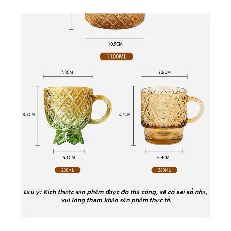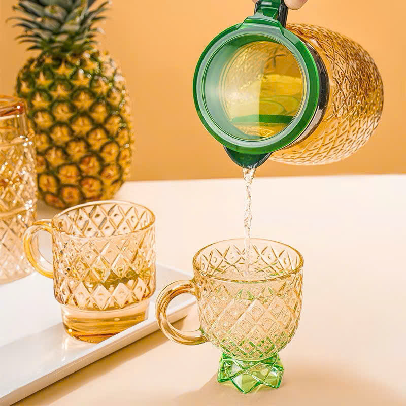 ✨Bộ Bình 4 Cốc Ly Thủy Tinh Hình Quả Dứa Màu Hổ Phách, Bình Chịu Nhiệt Tốt, Trang Trí - HÀNG CHÍNH HÃNG MINIIN