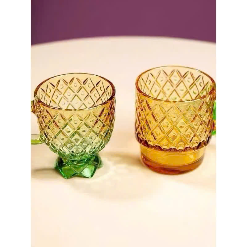 Cốc Thuỷ Tinh Vintage Hai Màu Trong Suốt Và Hổ Phách Siêu Đẹp