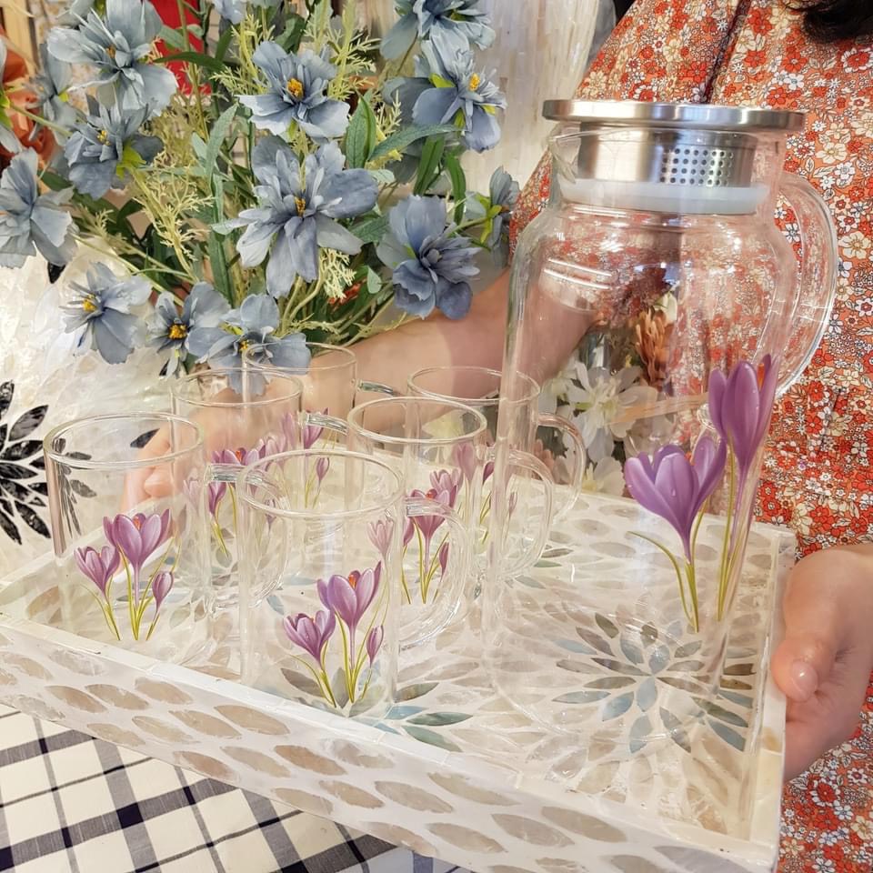 ✨BỘ BÌNH ĐỰNG NƯỚC THỦY TINH CHỊU NHIỆT CAO CẤP HỌA TIẾT HOA 3D - VD68 ( 1 BÌNH + 6 CỐC)