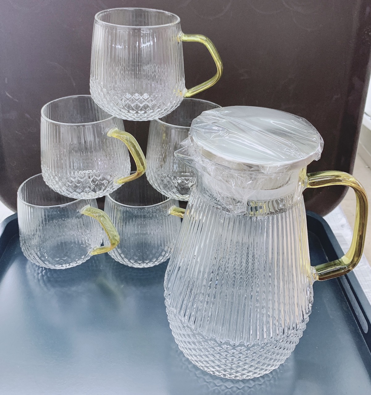 Bộ khay bình nước 6 cốc thuỷ tinh cao cấp