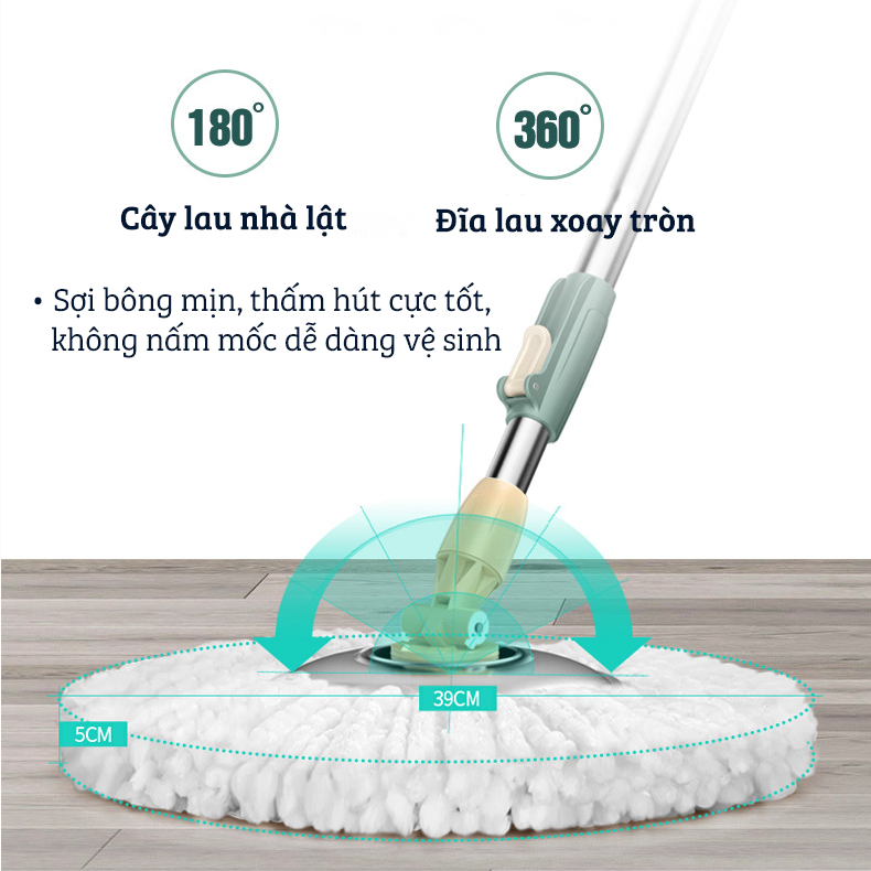 - Bộ Cây Lau Nhà Xoay Tay 2 Bông Lau Lock&Lock Corner ETM494 (330 x 235 mm) - Xanh Biển bao gồm thùng giặt, cây lau và bông lau. Sản phẩm được chế tạo từ nhựa