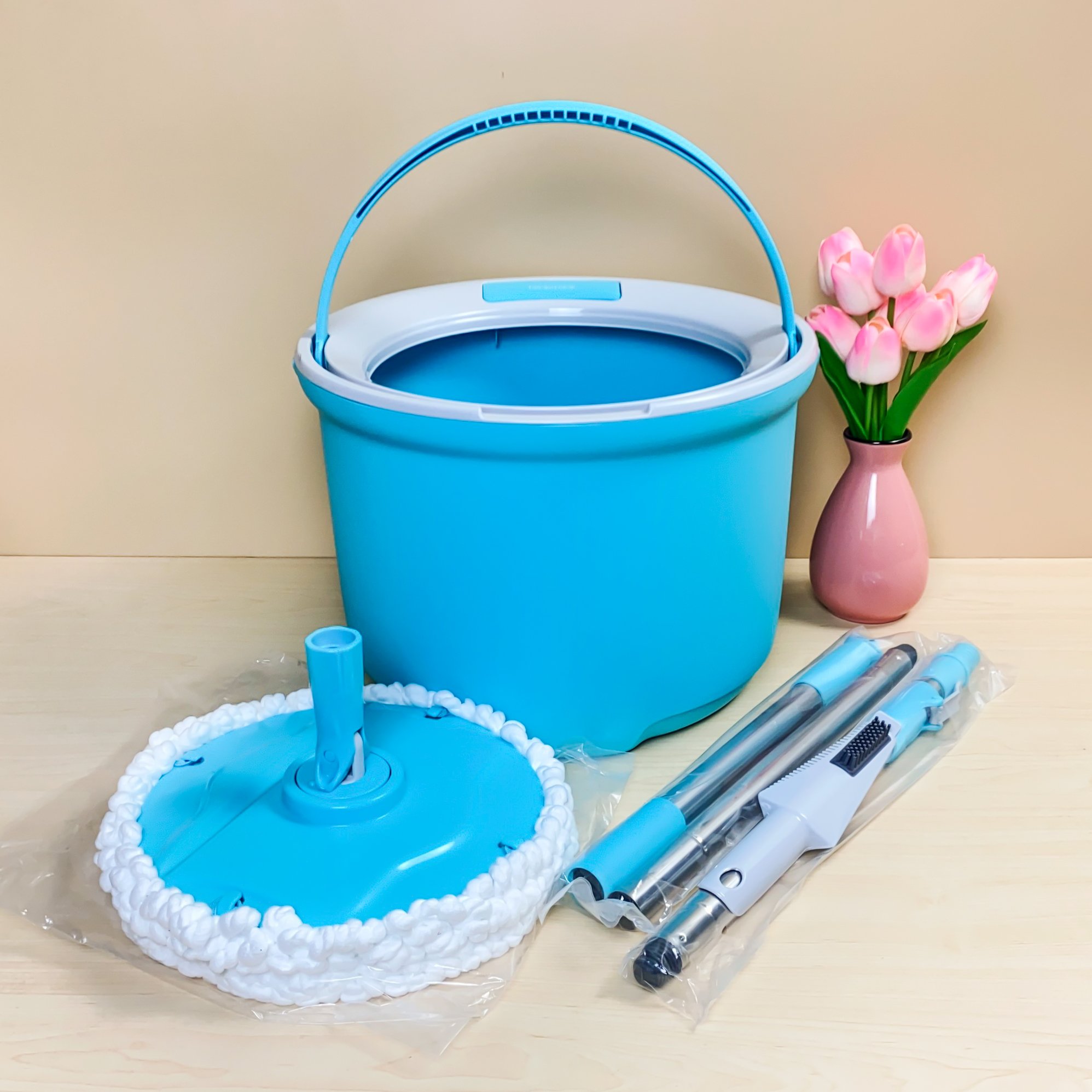 - Bộ Cây Lau Nhà Xoay Tay 2 Bông Lau Lock&Lock Corner ETM494 (330 x 235 mm) - Xanh Biển bao gồm thùng giặt, cây lau và bông lau. Sản phẩm được chế tạo từ nhựa