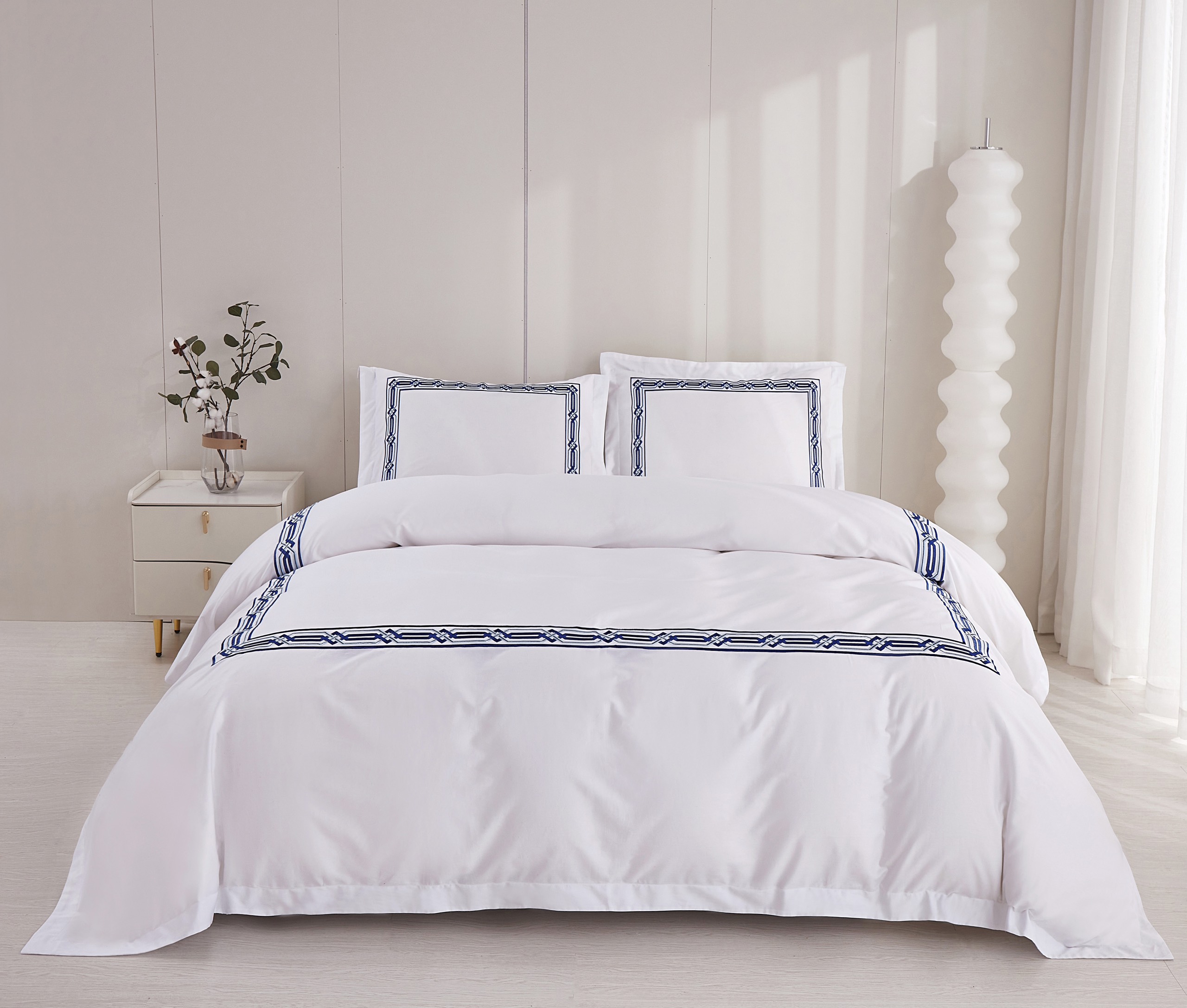 ✨Bộ chăn ra Casa Bello Home - Set Serenity Blue Cotton lụa satin thêu họa tiết thêu 5 món