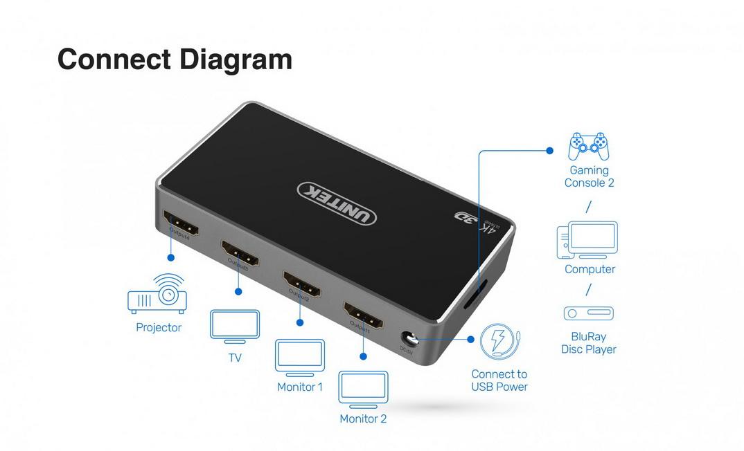 ✨Bộ chia HDMI 4K 1 vào 4 ra chính hãng Unitek V1109A - HÀNG CHÍNH HÃNG