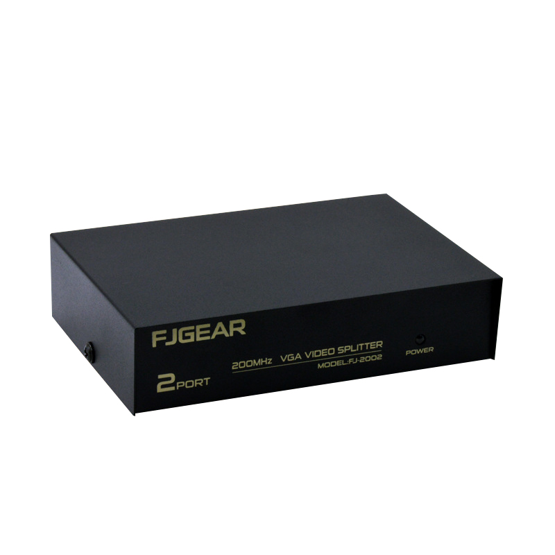Bộ chia màn hình VGA FJ-2002 hai cổng chính hãng hỗ trợ kết nối 1 CPU ra 2 màn hình dùng chung, khả năng truyền tải tín hiệu từ 1 nguồn phát VGA ra 2 màn hình đồng thời cùng lúc với chất lượng tín hiệu ổn định Hỗ trợ băng thông tới 200Mhz và độ phân giải FULL HD cho hình ảnh xuất ra sắc nét, là sản phẩm được sử dụng cho phòng họp, văn phòng, showroom,... Thông số cơ bản Bộ chia màn hình VGA 2 cổng Bộ chia màn hình hỗ trợ chuẩn kết nối VGA Băng thông 200Mhz Hỗ trợ độ phân giải cao FULL HD 1920x1440 Thiết kế nhỏ gọn, vỏ hộp kim loại chắc chắn, bền bỉ Nguồn điện sử dụng DC 5V (có adapter (sạc) kèm theo)
