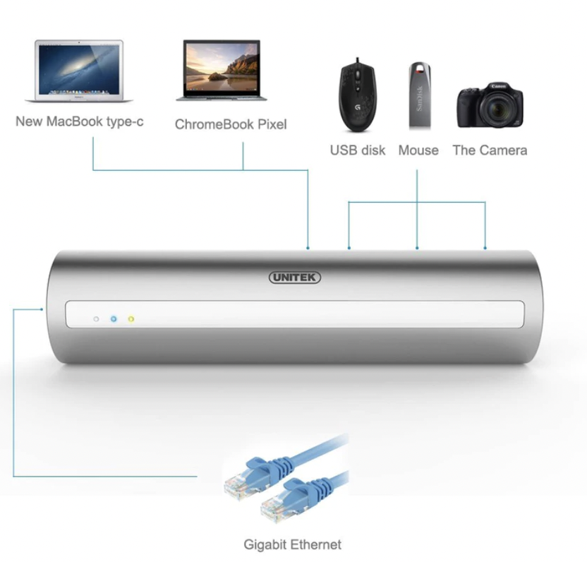 Bộ chia USB Type-C ra 3 cổng USB 3.0 Unitek Y-3095 + Lan Gigabit là một USB HUB với thiết kế dạng trong, tỉ mỉ và độc đáo. Cùng với chuẩn giao tiếp tốc độ cao USB3.0 mới nhất, giúp
